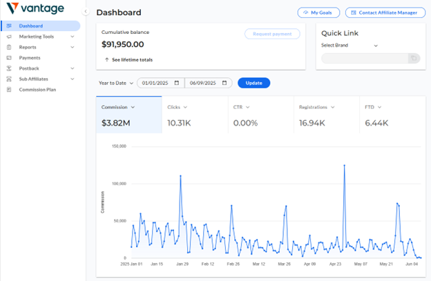 Cellxpert is Vantage’s dedicated affiliate tracking software, designed to give you full visibility over your campaigns, commissions, and performance. It ensures that every click, conversion, and commission is recorded transparently and in real time.