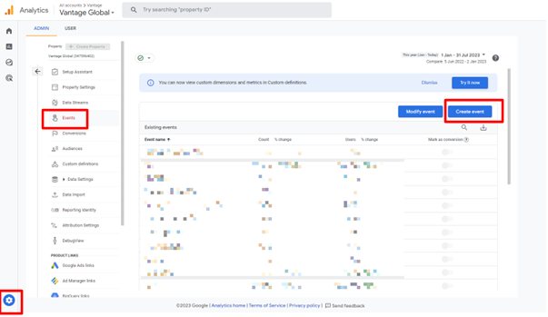 As we’re looking at how GA4 can leverage insights into sales, let’s see how to set up a goal to cover sales. To add a goal, go to Event > Events and click to create a new event.