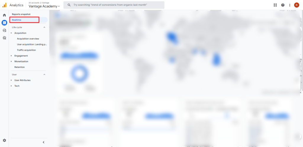 You can access Realtime reports in Google Analytics 4 on the left side of the screen.